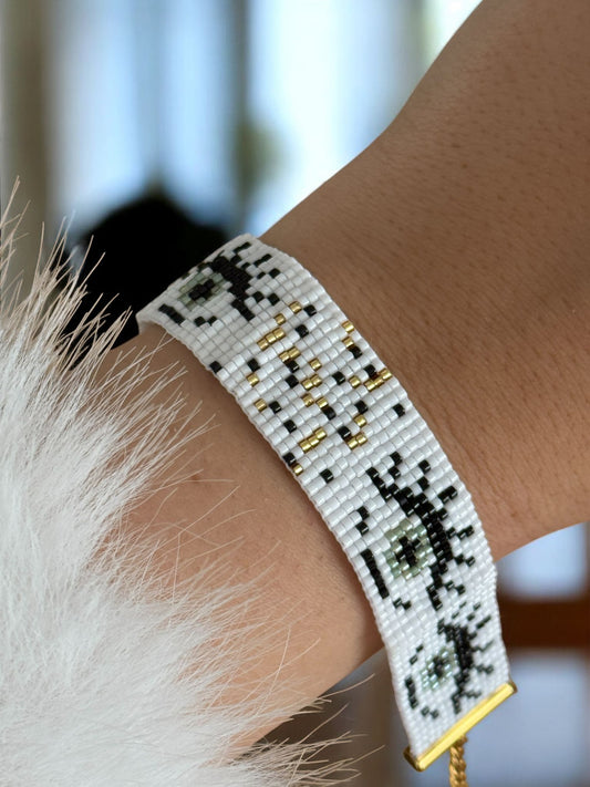Çizgi Detay Tasarım Leopar Örme Miyuki Bileklik