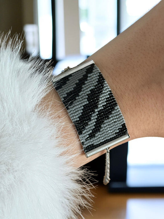 Zebra Desen Silver Örme Miyuki Bileklik