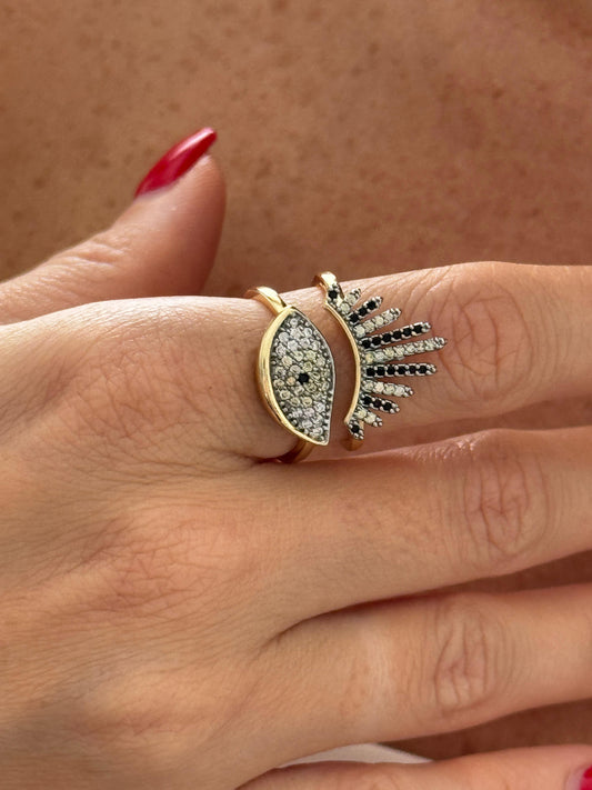 Özel Seri Ayarlanabilir Çift Başlı Taşlı Göz Yüzük