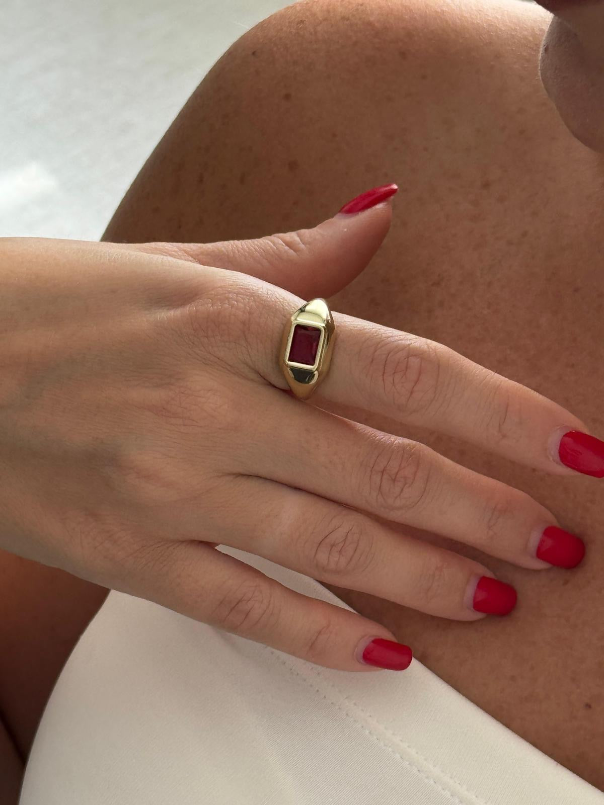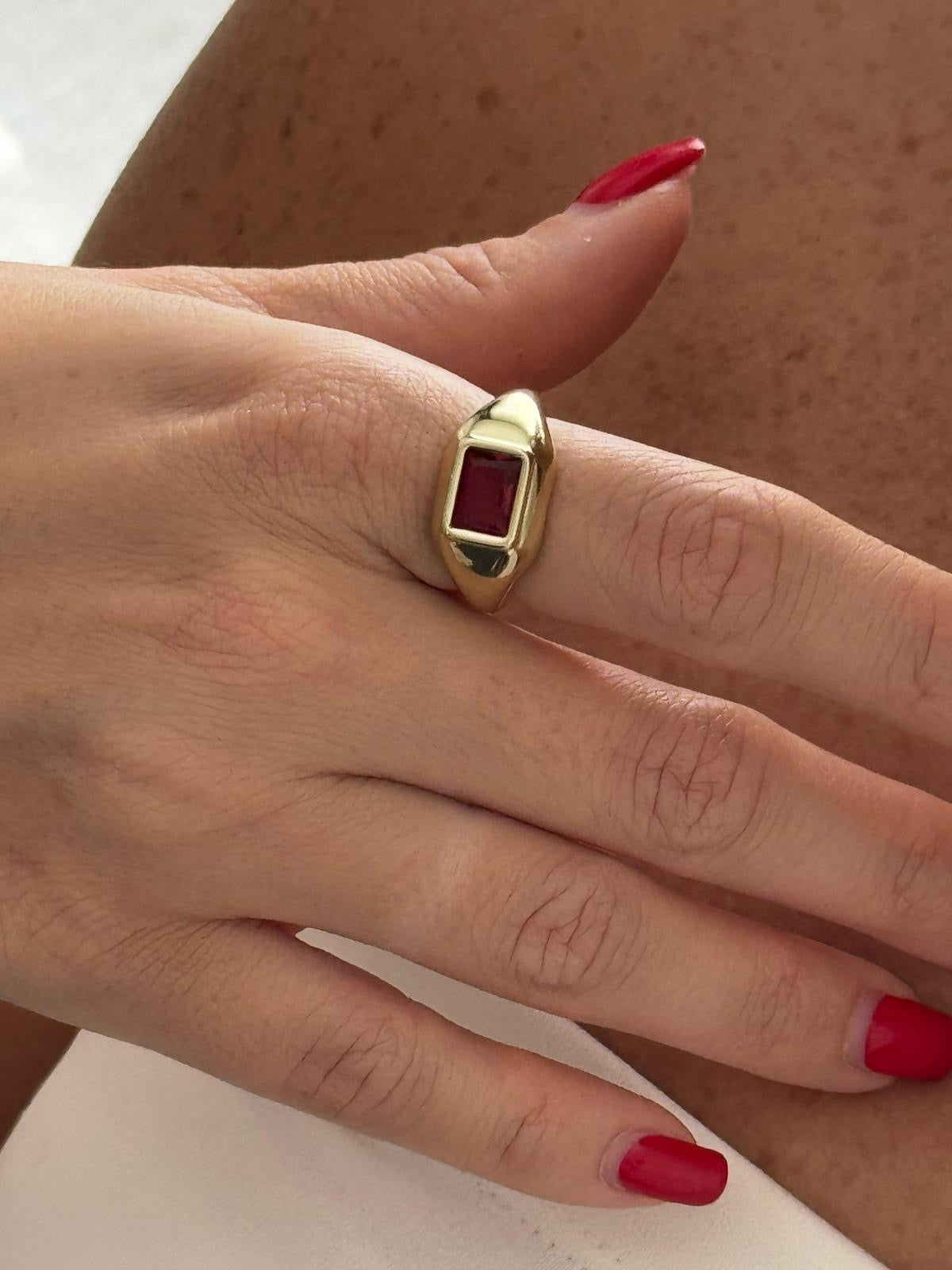 Çelik Ayarlanabilir Dikdörtgen Bordo Taşlı Yüzük