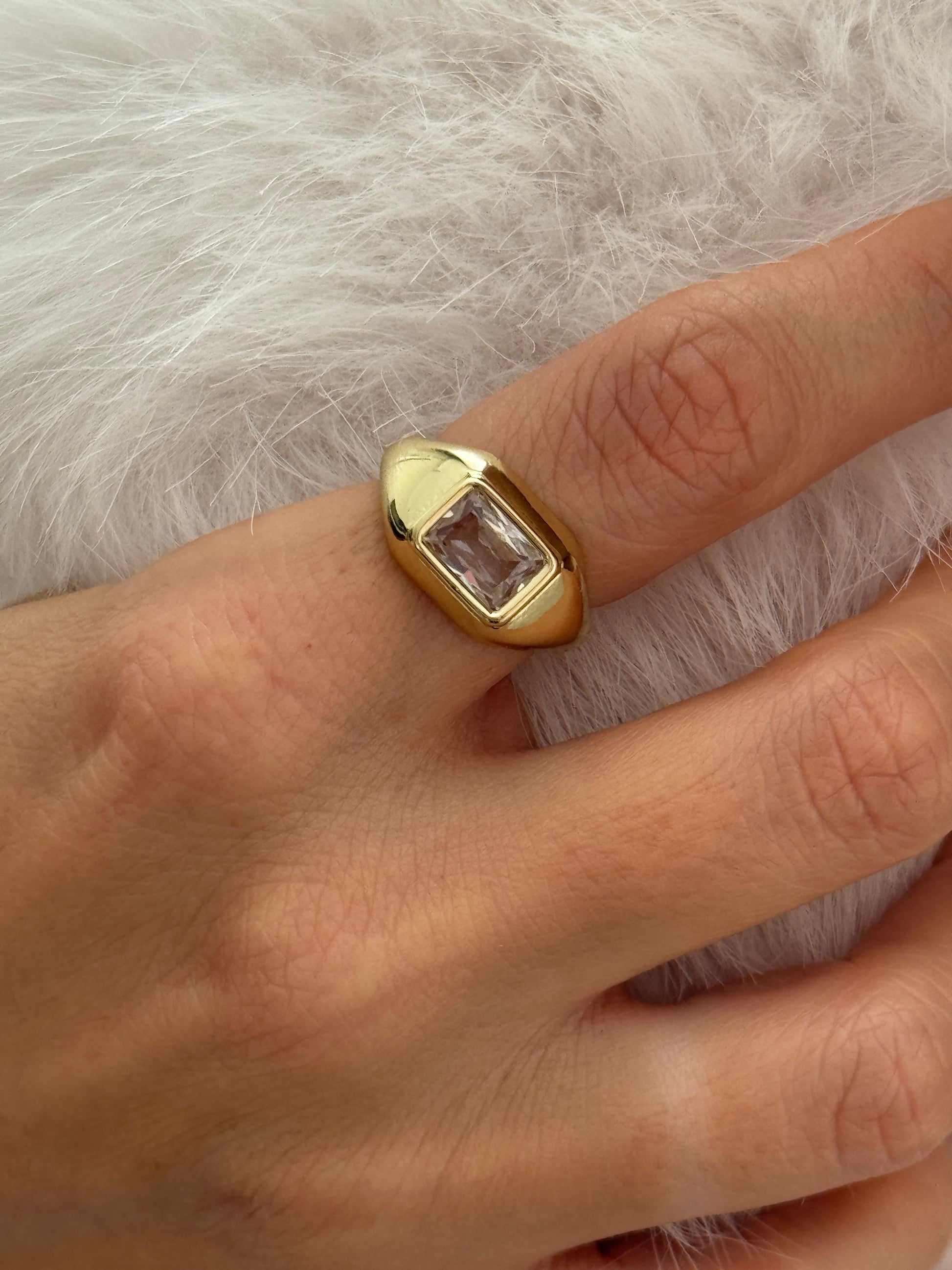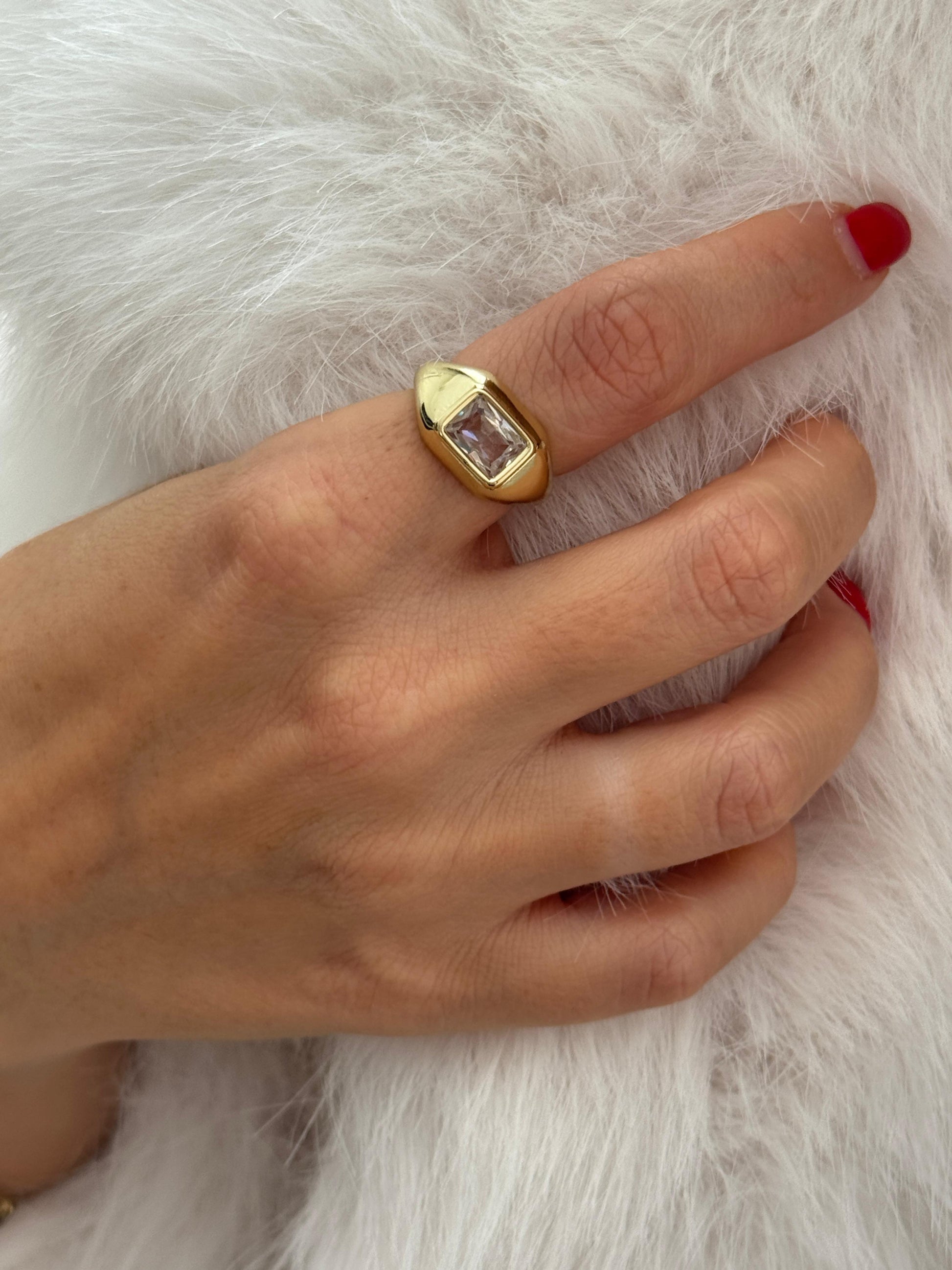 Çelik Ayarlanabilir Dikdörtgen Sedef Taşlı Yüzük