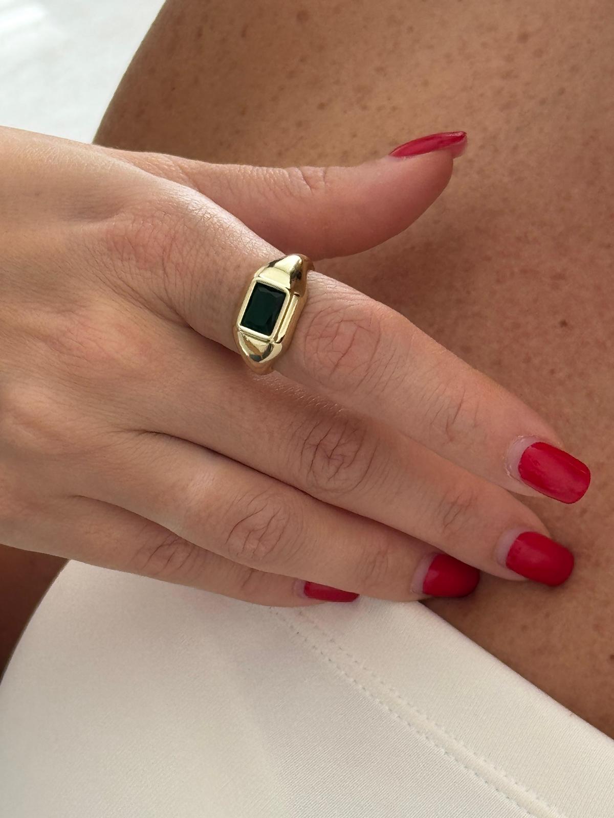 Çelik Ayarlanabilir Dikdörtgen Zümrüt Taşlı Yüzük