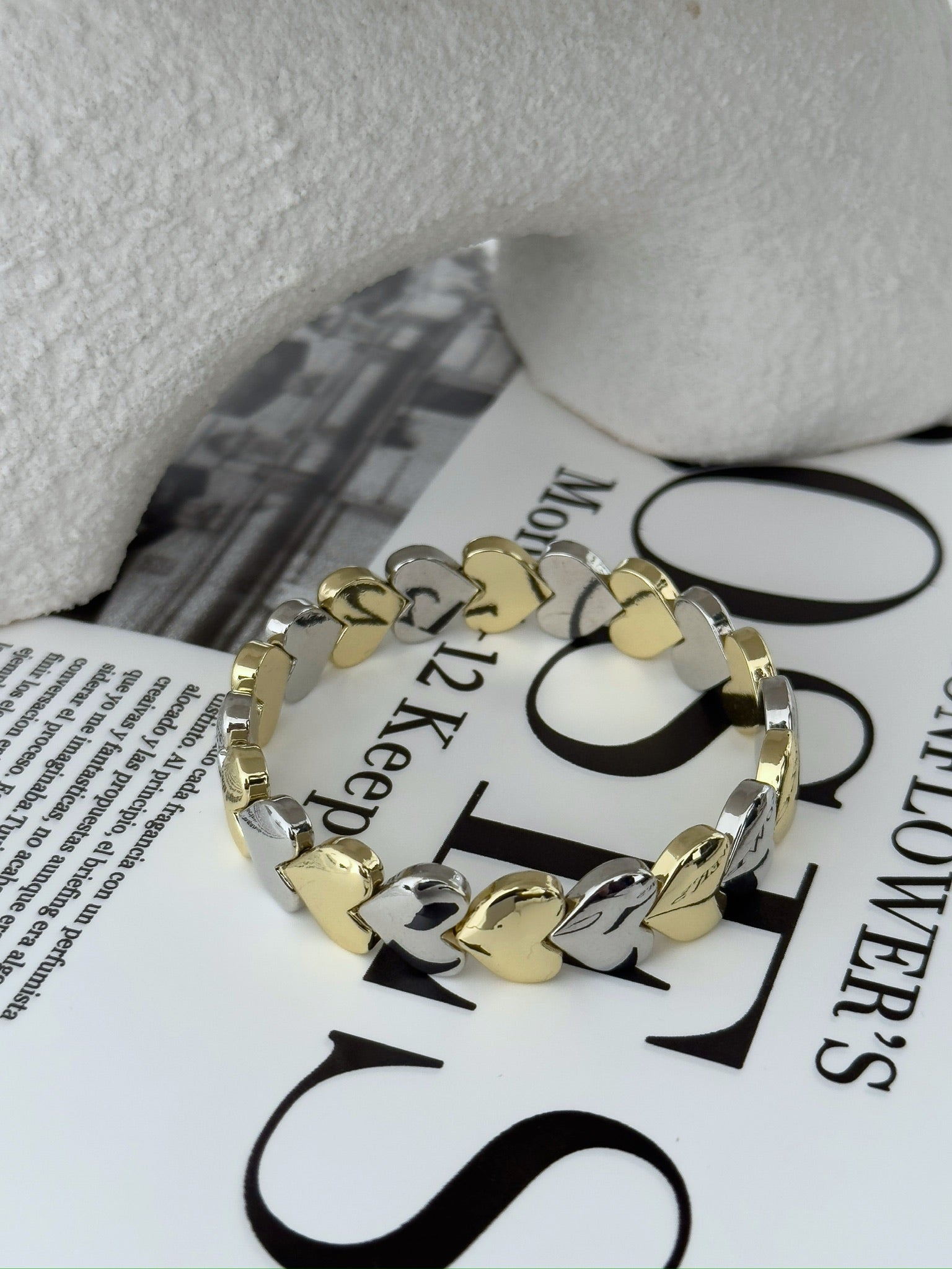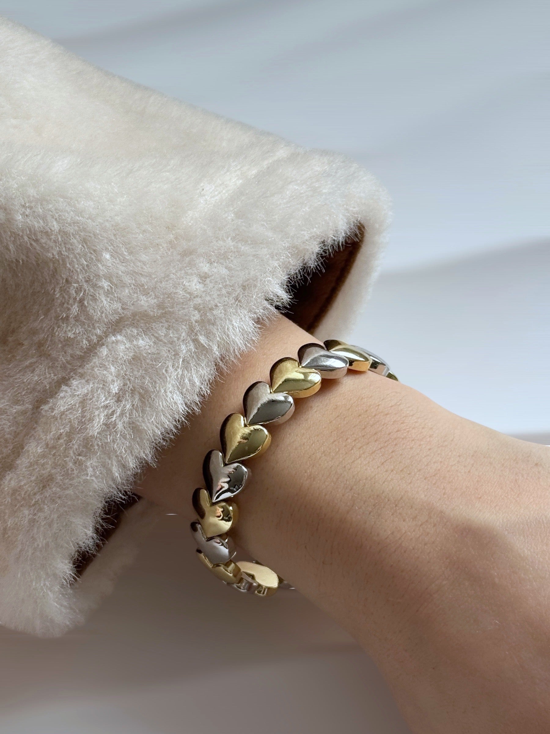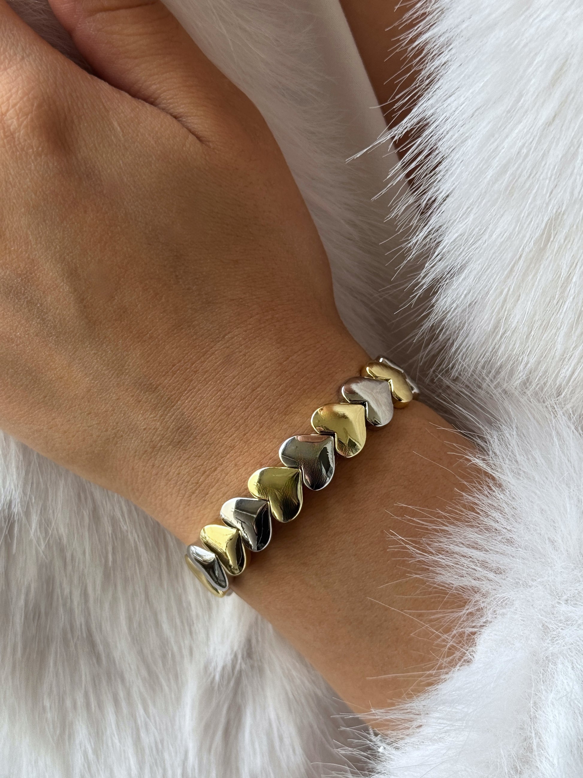 Çelik Lastikli Çift Renk Kalp Bileklik